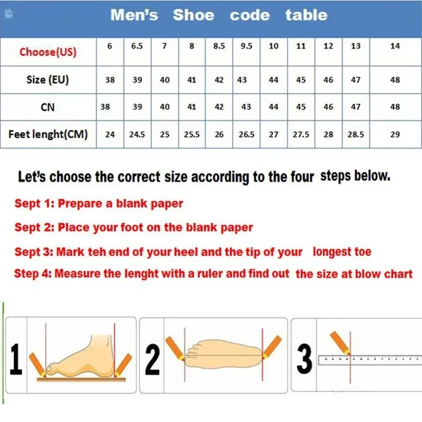 You can click Store Rating----Visit Store to find more fashion items in our store. Size Chart : 6=38=US(6)=EU(38)=240mm(bare feet length) 6.5=39=US(6.5)=EU(39)=245mm 7=40=US(7)=EU(40)=250mm 8=41=US(8)=EU(41)=255mm 8.5=42=US(8.5)=EU(42)=260mm 9.5=43=US(9.5)=EU(43)=265mm 10=44=US(10)=EU(44)=270mm 11=45=US(11)=EU(45)=275mm 12=46=US(12)=EU(46)=280mm 13=47=US(13)=EU(47)=285mm 14=48=US(14)=EU(48)=290mm Color : Brown \Black \Khaki \Green \Red Material : Leather \Rubber Style : Fashion Casual Outdoor Attention: 1.Please allow 1-3 cm error because measured by hand, please refer to the Sizing Chart before choosing! 2.Because the screen brightness is different, the color may be slightly off, it is normal! 3.Please check the Size Chart photograph carefully and see the detail measurements for an accurate fit. [<2021-10-19 10:56:40 192931@#1137>]