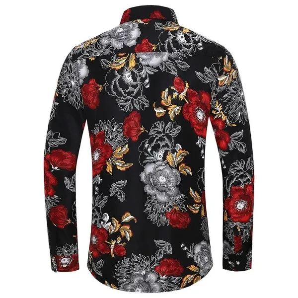 MEN`S Flower Shirt/Floral Shirt Long-sleeve Button Up Shirt Fashion Male Casual Blouse (M-7XL)