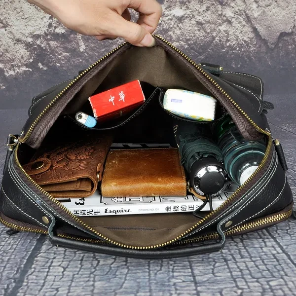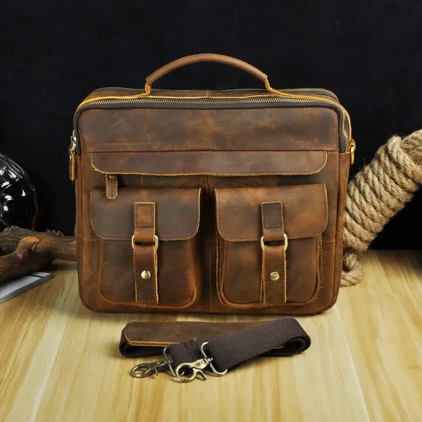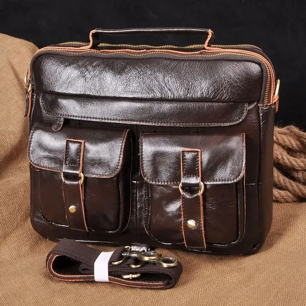 Product NO: B1124 (B207) Material: Genuine Leather Size: 33*7*27cm(13*3*10.5inch) ,can fit a max 13inch laptop Structure: This is a high quality genuine leather glossy briefcase, it helps to keep your commodity organizered. Detachable and adjustable shoulder strap. Attentions: 1. This kind of leather is easy to get scratches, please be noted before placing an order. 2.There may come with some leather smell when you get this produtc, since it's new and unused. If you want to get rid of it asap, please open the package and put it in a ventilate place for a few days, the smell will also fade away as time going. 3.Because each piece is individually crafted, the color of each piece may vary slightly, please understand, thanks.