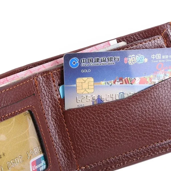 Wallet Length : SHORT Main Material : PU leather Item Weight : 60g Lining Material : Polyester Size: 12cm*9cm*1.5cm Material Composition : PU Pattern Type : Solid Style : vintage Interior : Coin Pocket Interior : Card Holder Interior : Photo Holder Interior : Zipper Pouch Interior : Interior Zipper Pocket Gender : MEN Item Type : Wallet Wallets : Standard Wallets