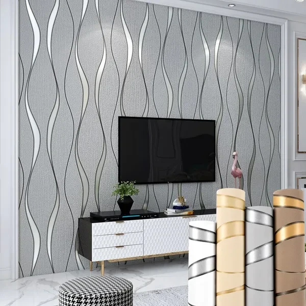 Modern Abstract Wavy Vertical Stripes Wallpaper Roll Bedroom Living Room Wall Decor