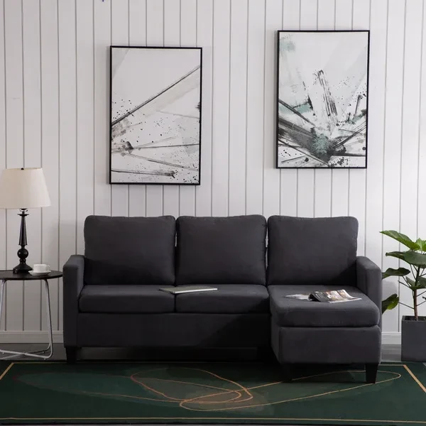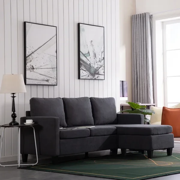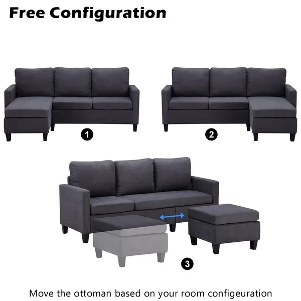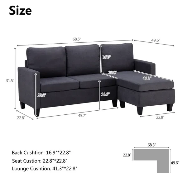 Specifications: 1. Product Dimensions: (76.38 x 49.6 x 35.04)" / (194 x 126 x 89)cm (L x W x H) 2. Color: Dark Grey/Light grey/beige 3. Weight Capacity: 500lb / 225kg 4. Material: Board Sponge 5. Surface Material: Cotton and Linen Package Includes: 1 x Sofa
