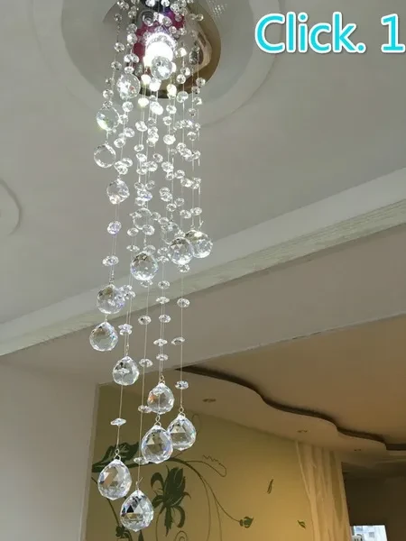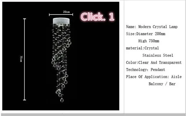 Item Type:Chandeliers Shade Type:Crystal Shade Direction:Down Body Material:Crystal Light Source:LED Bulbs Number of Lights:1 Pcs size;Click. 1 =H750 mm Dia 200mm / Click. 2 = H450 mm Dia 180mm Wattage:40-60W Style:Modern Base Type: Click. 1= GU10 / Click. 2 = E27/26 Is Dimmable:No Voltage:110V,220V,240V,260V,110-240V,90-260V Power Source:AC Is Bulbs Included:NO