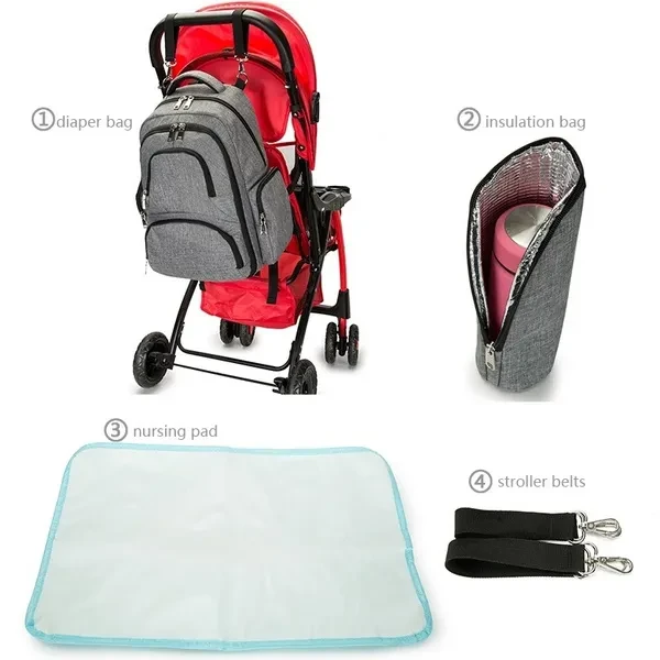 Nappy Changing Bag Multifunction Mummy Maternity Mother Diaper Bag with Pad and Warmer Large Baby Travel Backpack