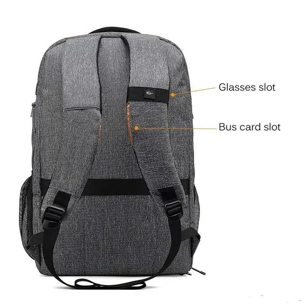 Name: Laptop travel Backpack Demensions: 20.5 x 12.5 x 7.0 inches; Fits up to 17.3 inches laptop. Weight: 1.2KG Color: Black Grey Blue Material: Oxford Nylon cloth; 210D waterproof polyester lining Features: 1. USB 2.0 Charging port design. Built-in USB cable. Use it to connect your own power bank, then connect your phone with original USB cable to the USB port, you could charge your phone conveniently. 2. Construction: 3 compartments + 1 front pocket. ***Independent laptop compartment Full of foam padding to protect laptop. 1 Velcro belt to fix the laptop, long zipper to zip and makes it easily to take out the laptop. Fits up to 17.3 inches laptop on market. ***Independent clothes compartment This compartment designed for keeping 2--3 days summer clothes, ideal for your business day or daily use for school, travel or hiking. ***Independent laptop accessory compartment This compartment designed for keeping laptop accessory like power cord, mouse, keyboard. ***Functional front pocket This pocket designed for keeping cards, wallet, phone and pens for daily use and quick taking. ***2 mesh side pocket for keeping water bottle and umbrella. 3. Lightweight design is easy for carrying. The top grab handle offers quick grab-and-go style. Ergonomic design ensures the dispersion of gravity of the fulled bag. 4. Personalized good looking appearance with large capacity, ideal for using as book bag, rucksack schoolbag, satchel, for daily use at school, work, weekend, outdoor holiday, outdoor activities, occasional travel, gyms, hiking, biking etc. Nice size admirably suits college students, teen girls boys and adults.A practical laptop travel backpack for you! 5. Fit for Dell / Lenovo / Toshiba / HP/ Macbook etc.More room for keeping 2--3 days summer clothes for travel.Suits for College students, businessmen, office staff, teens, students, outdoor gens etc. Package include: 1 x Laptop Briefcase