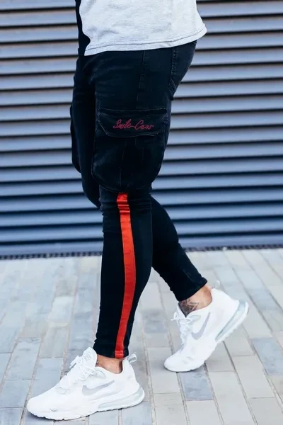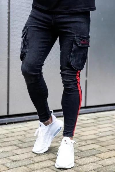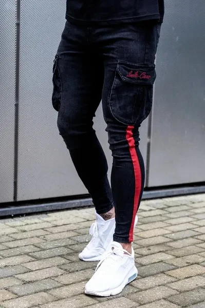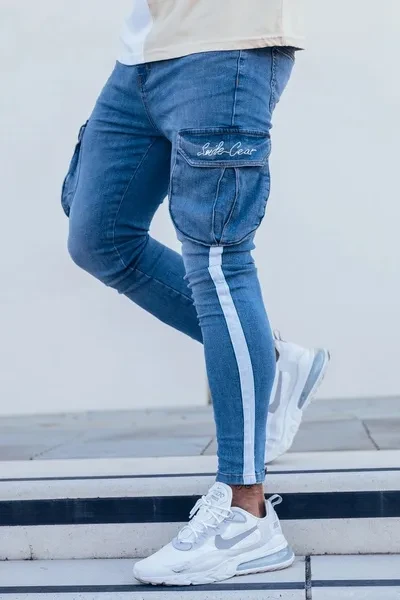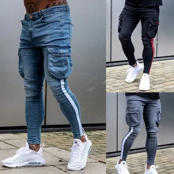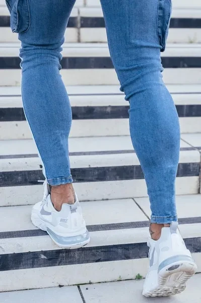 New Men's White Slim-fitting Ripped Jeans Pants with Paint Webbing Jeans