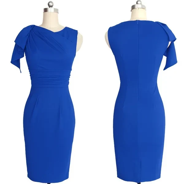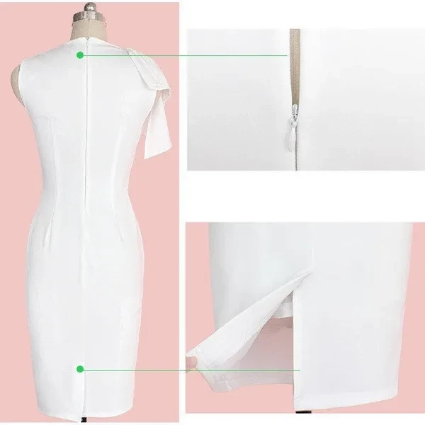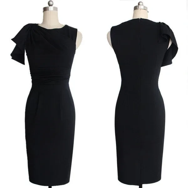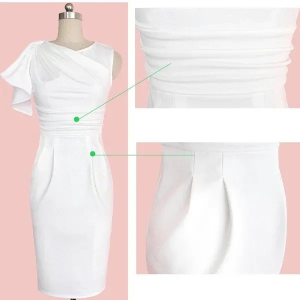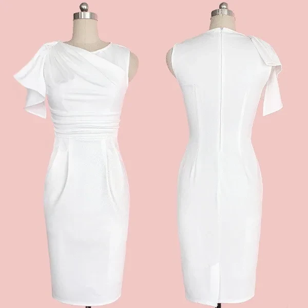 New Womens Celebrity Retro Elegant Ruffle Sleeve Ruched Party White/Black Evening Prom Fitted Stretch Wiggle Pencil Sheath Dress