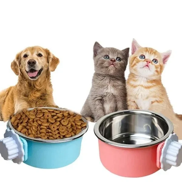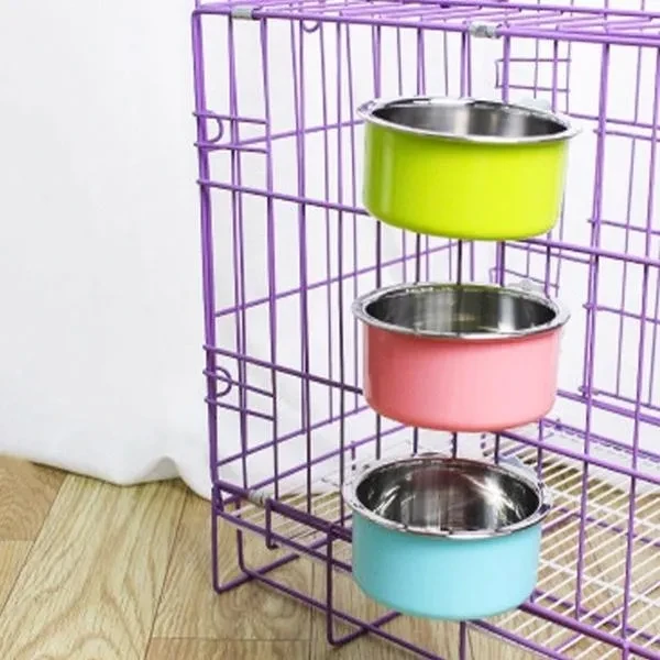 Pet Feeder Dog Bowl Stainless Steel Food Hanging Bowl Crates Cages Dog Parrot Bird Pet Drink Water Bowl Dish Accessory