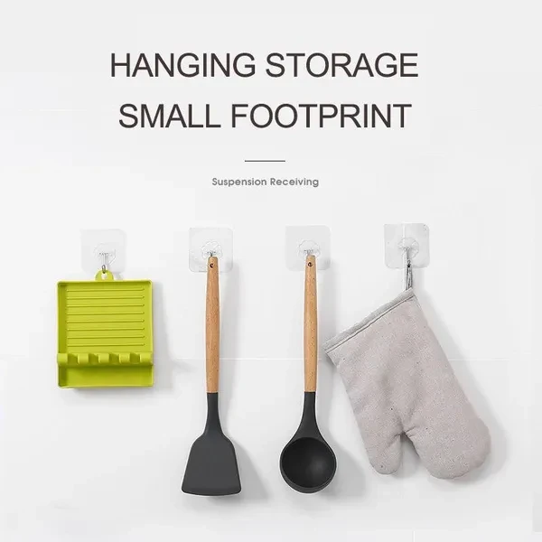 Food grade silicone material, healthy and durable, easy to clean creative 4 hole design, easy to solve a variety of kitchen tools such as spatula, soup spoon, scraper, knife fork chopsticks, etc., to protect the table surface clean, easy to clean creation Kitchen life.