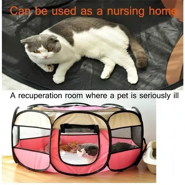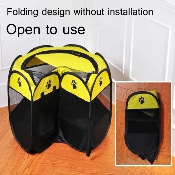 Size: S:74CM*74CM*43CM----29.13*29.13*16.9inch L:91CM*91CM*58CM----35.82*35.82*22.83inch Colors:gray,pink,coffee,yellow Features : 1. Folding design, easy to storage, portable 2. Washable and easy to clean 3. Extremely durable and water/stain resistant 4. 8-Panel Mesh Windows and An Easy-To-Access From Each Mesh Window. 5. 2 Zippered Doors, 1 Top and 1 Side 6. Provides enough space for your pet to play and exercise 7. Ideal for Indoor and Outdoor Uses Material:600D Oxford cloth/PVC Plastic mesh