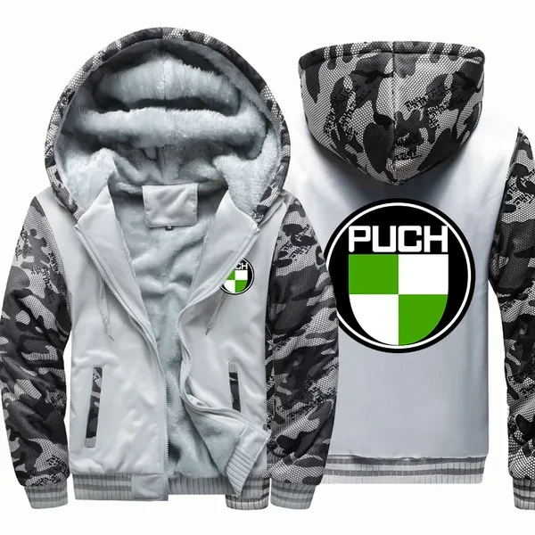 PUCH New Winter Fashion Men's Thicken Jackets Outdoor Keep Warm Hooded Coats Camouflage Fleece Zipper Jackets
