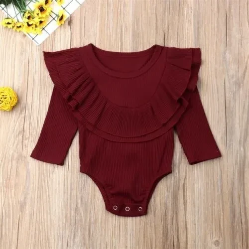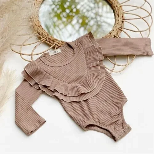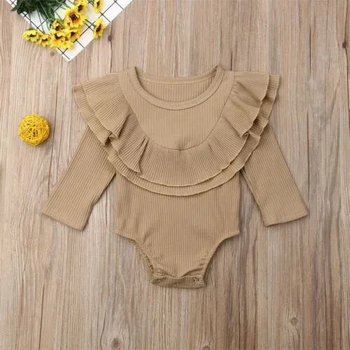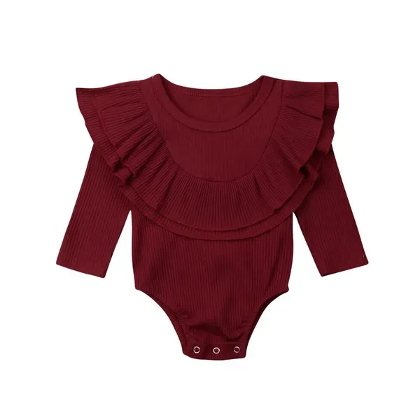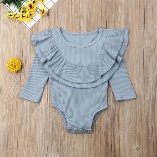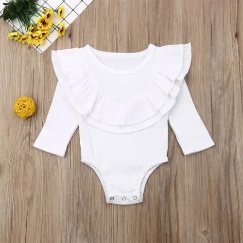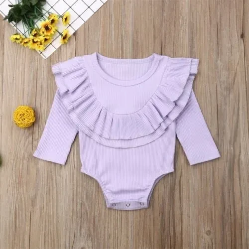 Autumn Newborn Toddler Baby Girls Clothes Lotus leaf collar Outfit Long Sleeve Cotton Romper Baby Solid Jumpsuit Clothing