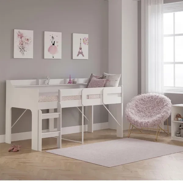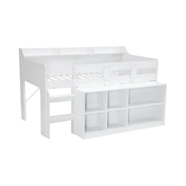 Letting your little one choose their big-kid bed is a fun and exciting experience. The Rack Furniture Twin-Sized Furniture Collection provides the quality and design that will last your child for years to come. The Hamilton Twin-Sized Lofted Bed Frame with Storage Unit includes a wooden lofted bed frame and an attachable 6-cube storage unit. The twin-sized bed frame features both storage and space for creative play. Don't worry about your child rolling out of bed, a side rail helps to prevent falls and a built-in ladder allows them to climb in and out easily and independently. The 6-cube storage unit provides space for toys, books, clothes, art supplies, and more. Let your little one transform the space under the lofted bed into a play fort or secret cove. Encourage your child's imagination while ensuring they get a good night's rest with the Hamilton Twin-Sized Loft Bed Frame with Storage Unit. Sleep, store, and play with the Rack Furniture Twin-Sized Furniture Collection.