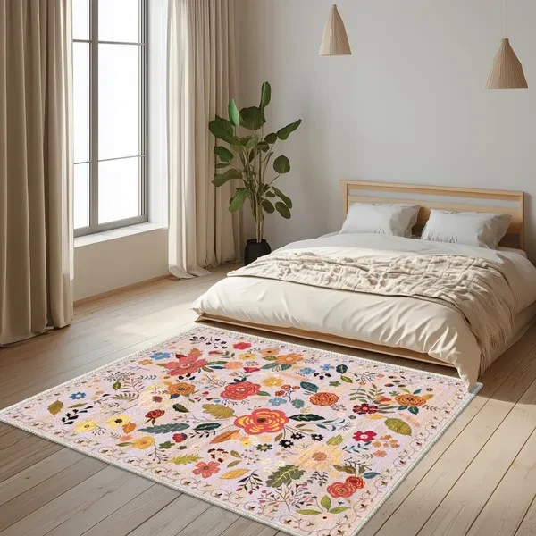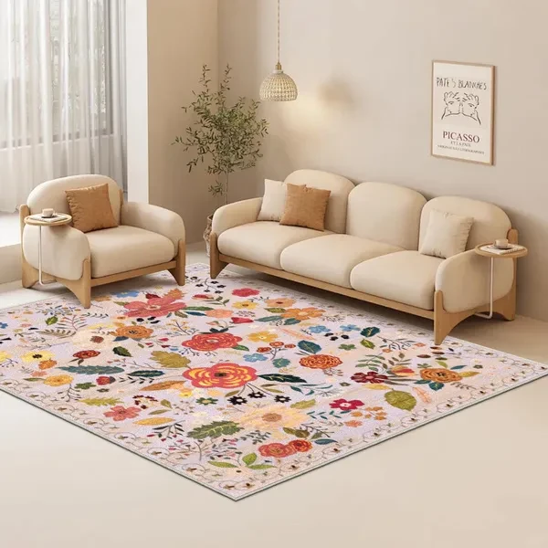 Regional Carpet Living Room Carpet Soft Machine Washable Bohemian Farmhouse Neutral Anti Staining Indoor Carpet Bedroom Dining Table Home Office Decoration