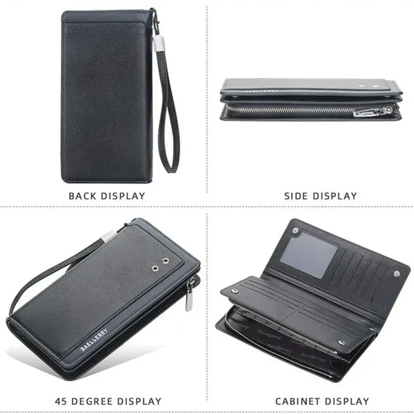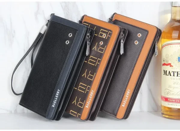 RFID New Baellerry Men's Retro Business Wallet Large Capacity Multifunctional Zipper Phone Bag Fashion Purse Card Holder for Men