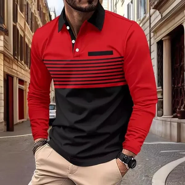 Spring Autumn Fashion Men Striped Patchwork Long Sleeved Tshirts