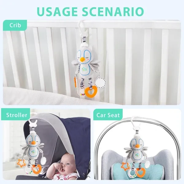 【Developmental Toys Designed for Baby】Hanging toys for baby gym, this baby toys 0-6 months is designed to be colorful and perfect for parents to interact with their babies. With the stroller toys for babies 0-12 months, parents can teach babies to recognize the bright color animals, tell stories to increase their curiosity and enrich the cognitive world. The baby boys girls toys can inspire baby's visual development and cultivate baby's color perception, encouraging baby to touch and explore. 【Car Seat Toys for Babies 0-6 Months Boys Girls】Hanging baby toys for play gym, soft and comfortable carseat toy with bright-colored cute animals, it is easy to inspires your baby's curiosity and cultivate baby's color perception, a perfect playmate for your baby. 【Carseat Toys for Infants】This stroller toy car seat toy features a discovery mirror, crinkle wings... and it will make a lovely sound when you shake it, keeping your baby happy while stimulating their senses. (NOTE: Without playing music function!) 【Baby Hanging Toys for Play Mat】Dangle toys for babies, you can hang this stroller toy stuffed rattle toy on baby car, stroller or bed with hook, also allows the baby to hold the toy and play with it. Convenient to hang and take down,clip on baby toys 【Early develoment adjustable toy】Baby dangle hanging toys, infant toys made from safe and non-toxic material. Not harmful for babies. Safe teething toy allows children to play and chew, while soothing baby's gums, baby clip on toys 【Best Baby Registry Gifts】Baby gym toys hanging, the infant toys enhance the interaction when parents play with babies, helping improve our baby's visual, auditory development, and brain development. That would be the perfect gift for your baby as a birthday gift, Christmas gift, Newborn gift, Thanksgiving gift, New Year gift, or Baby Shower Party gift. It's suitable for baby toys 0-3 months, baby toys 3-6 months, infant toys 0-6 months, infant toys 3-6 months, baby toys 0-6 months