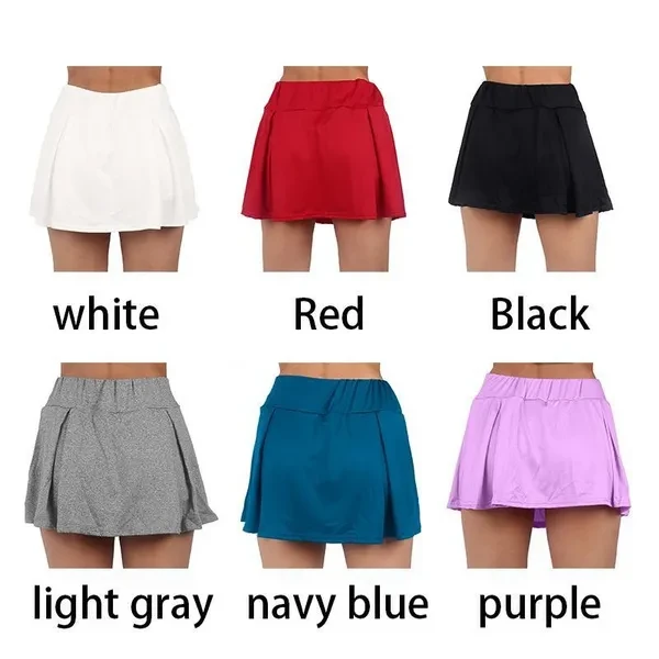 Summer New Women Sports Tennis Dance Fitness Shorts and Skirts Quick Drying Solid Female Tennis Running Athletic Workout Skirt with Shorts Yoga Fitness Skirts