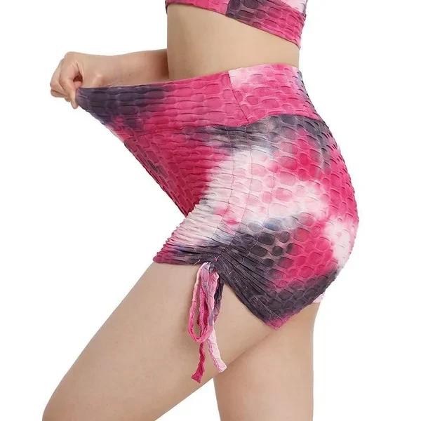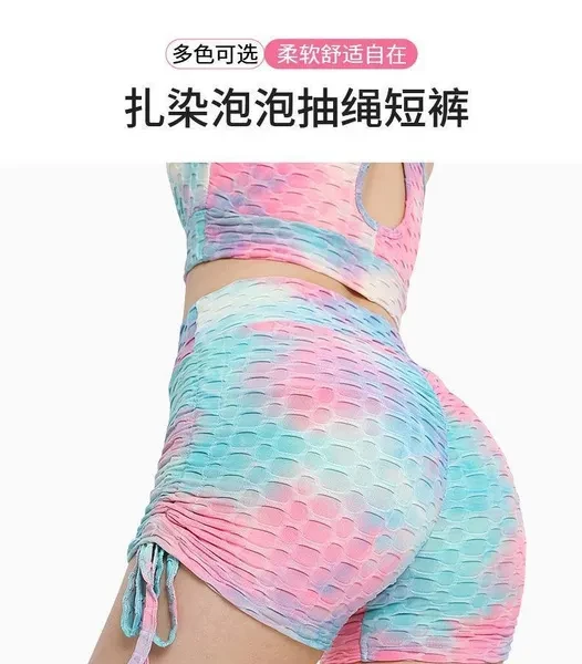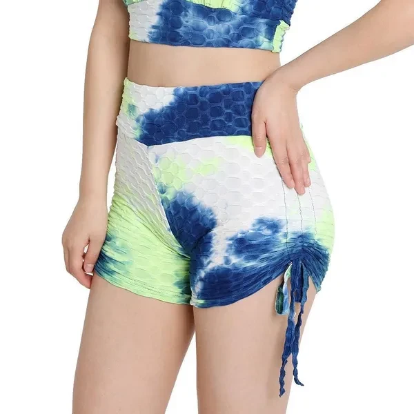 Tie-dyed Bubble Textured High Waist Yoga Shorts for Women Sportswear Gym Fitness Trainer Workout Running Yoga Shorts Pants Booty Lift Tiktok Shorts
