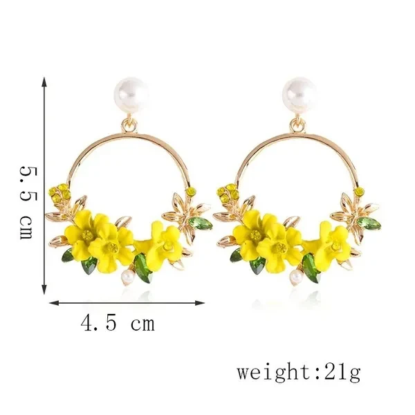 Trendy Cute Pink Flower Earrings For Women Girls Jewelry Female Rhinestone Gold Metal Round Circle Drop Earrings Gifts Brincos