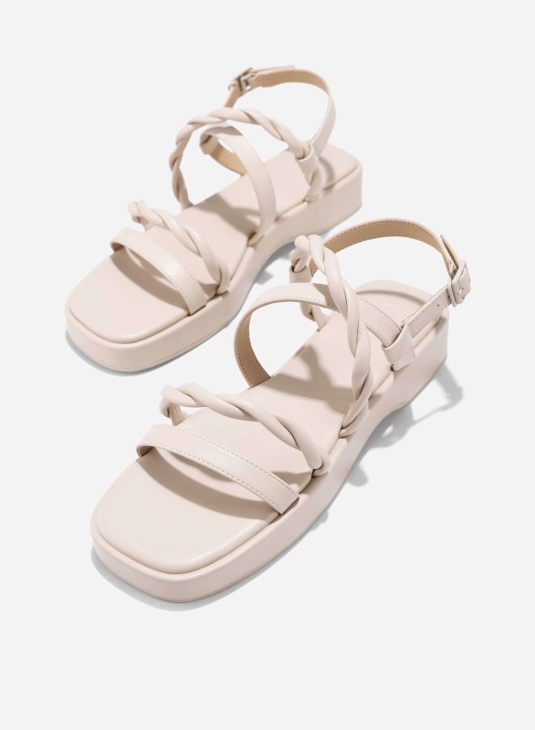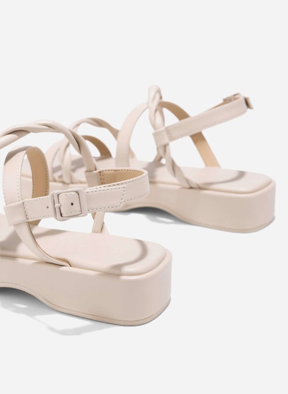 Twisted Strap Flatform Sandals - SDL 0345 - Cream