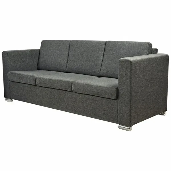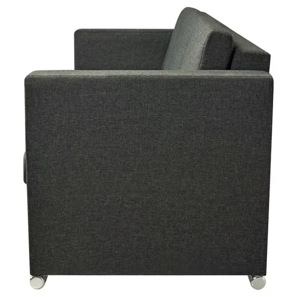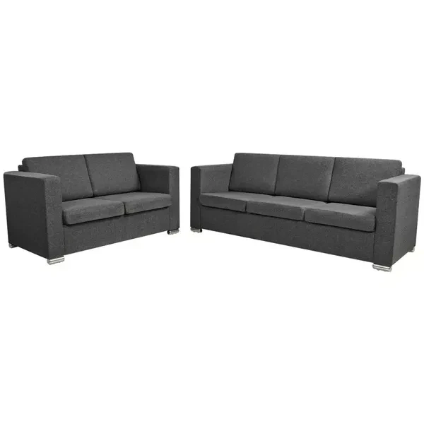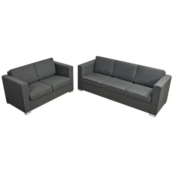 The stylish two-piece sofa set will be a great addition to your home or office. Whether you need a comfortable seat in your office or you just want a nice, sophisticated addition to your interior, this sofa set will be a great choice! The sofa set has a wide seat and thickly padded cushions for ultimate seating comfort. It is upholstered in high quality fabric and so hard-wearing. The pillowcases are easy to clean as they are removable and machine washable. The strong wooden frame and chrome-plated legs contribute to a robust construction. The delivery includes 1 x 2-seater sofa and 1 x 3-seater sofa. The assembly is very simple. Color: dark gray Material: wooden frame + fabric upholstery + chrome legs Backrest height: 41 cm Seat height from the floor (including seat cushion): 40 cm Cushion thickness: 16 cm Size of the 2-seater sofa: Overall size: 137 x 73 x 78 cm (W x D x H) Seat size: 109 x 50 cm (W x D) Size of the 3-seater sofa: Overall size: 191 x 73 x 78 cm (W x D x H) Seat size: 163 x 50 cm (W x D) Delivery includes 1 x 2-seater sofa and 1 x 3-seater sofa Simple final assembly Material: Polyester: 100%