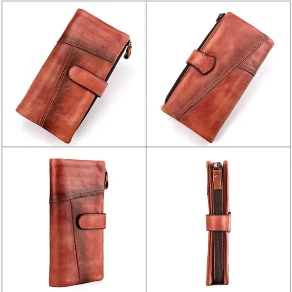 Leather lining;Zipper opening and closing Versatile & Special: Size: 9.5cm(W)x2cm(D)x19.5cm(L)(3.74"x0.98"x7.67") approx; weight: 150g (5.29oz)approx; The leather wallet is multifunctional with 18 card slots,2 ID windows,4 full-length bill compartments,1 zipper pocket,closed with snap. Roomy enough for fitting plenty of cards, change and dollar bills, coins, keep them well organized. Durable & Vintage Leather Long Wallet: This long wallet is made of cowhide genuine leather, classic and retro style, 18 card slots, top-quality zippers, detachable sturdy wrist strap, fabric lining, zip closure, leather and excellent workmanship, contemporary type design, classic, vintage, fashion and luxury, which shows your outstanding temperament when business, office, work. Designed for comfort: Durable, good construction, fashionable, carry all and comfortable carry, organizers, with wristlet strap, easy to carry, super simple, fashion and classic, brings you more fashion sense and happiness to carry it all the time when business travel outdoor camping Casual, perfect gift for Christmas, New Year, Thanks Giving Day, Groomsmen, Birthdays, Father's Day. Multipurpose use: This stylish long wallet can used as a wristlet bag, clutch organizer, clutch pack, hand bag, business bag, business wallet/purse, fit very well for adult men or women. perfect for busiest, outdoor, travel, camping, shopping, work, etc, not big, easy to put it in you backpack, luggage bag or suitcase when you travel.