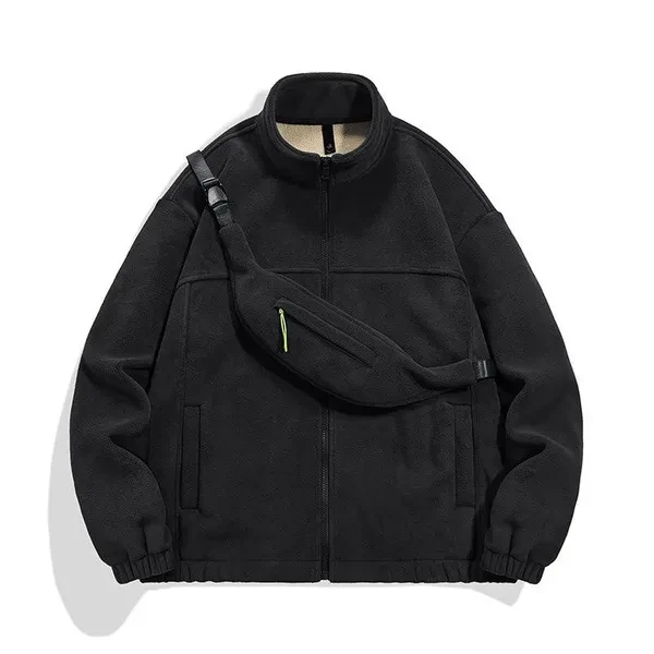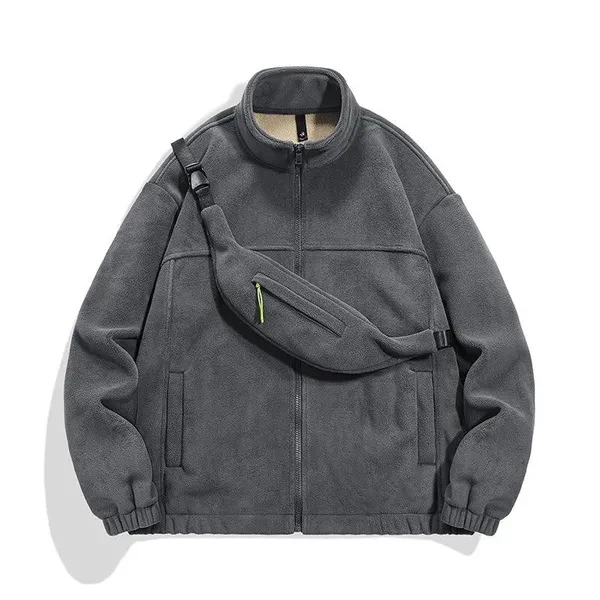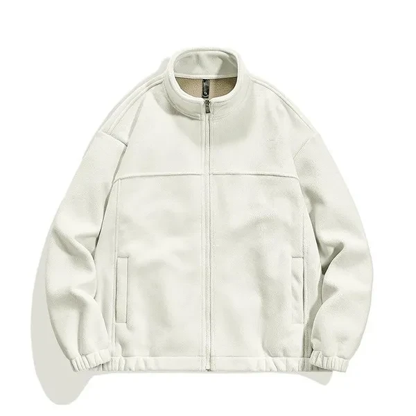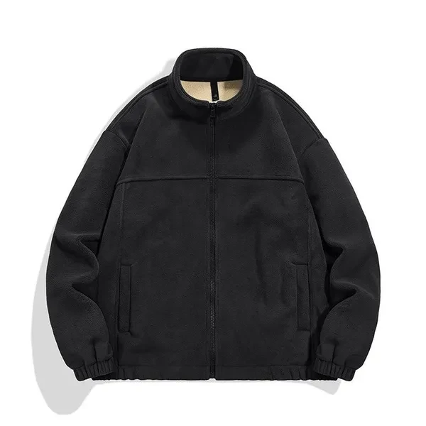 Winter fleece warm cardigan jacket sweatshirt men's solid color trend polar fleece padded stand collar jacket men's top