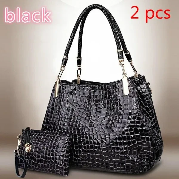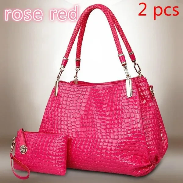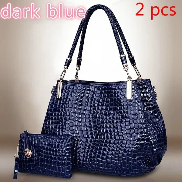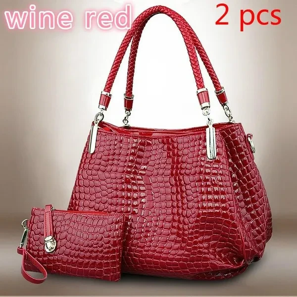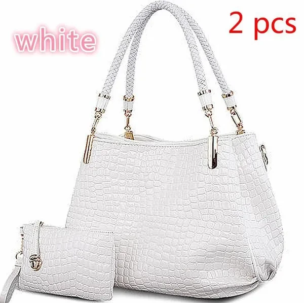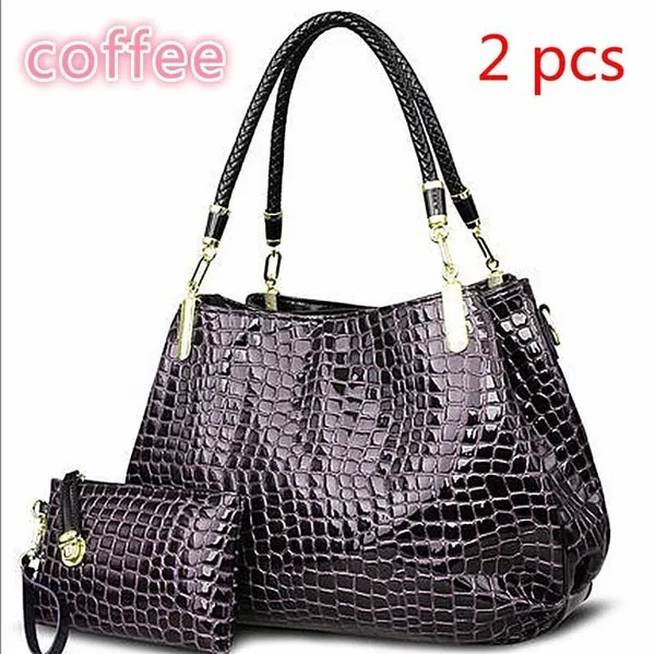 Women Handbag Shoulder Bags Crocodile Bag Women Messenger Bags Tote Bolsas Travel Bags 100% Brand New. Material: high-quality Leather and high-quality hardware Detailed Size: 35*18*26cm Color: 1pcs:Black,Blue,Wine red 2pcs/set:White,Black,Khaki,Red,Wine red,Blue,Coffee,Rose red Open/close type: Zip Occasion: outdoor Best gift for you or your friend Note: Note 1: 1 Inch=2.54 CM; 1 CM=0.39 Inch Due to goods different batches, Bag liner is also different.