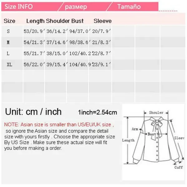 Please be reminded that due to lighting effects and monitor brightness/contrast setting, the color tone of the website photo and the actual item could be slightly different. Please note this is in Asian sizing, smaller than western size e.g. UK, US, AU. Please check the measurements carefully before making a purchase. Please allow 2-4cm discrepancy due to different measurement method. If you are not sure which size to buy, please provide height and weight, we will recommend a suitable size. Color: apricot, white Material: lace Size:S, M, L, XL. Real Size Infomation Unit:cm/inch 1Inch=2.54cm [Size S , Length 53/20.9 , Shoulder 36/14.2 , Bust 94/37.0 , Sleeve 20/7.9 , UK6] [Size M , Length 54/21.3 , Shoulder 37/14.6 , Bust 98/38.6 , Sleeve 21/8.3 , UK8] [Size L , Length 55/21.7 , Shoulder 38/15.0 , Bust 102/40.2 , Sleeve 22/8.7 , UK10] [Size XL , Length 56/22.0 , Shoulder 39/15.4 , Bust 104/40.9 , Sleeve 23/9.1 , UK12] Weight about: 200g SKU: 904-B710