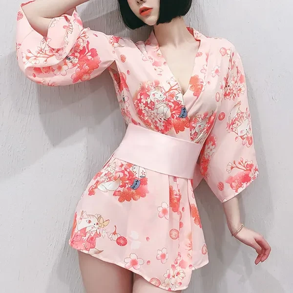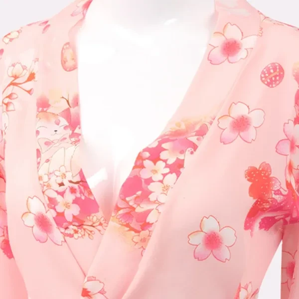 Women Lingerie Japanese Cat Kimono Bathrobe Anime Cosplay Yukata VCZ