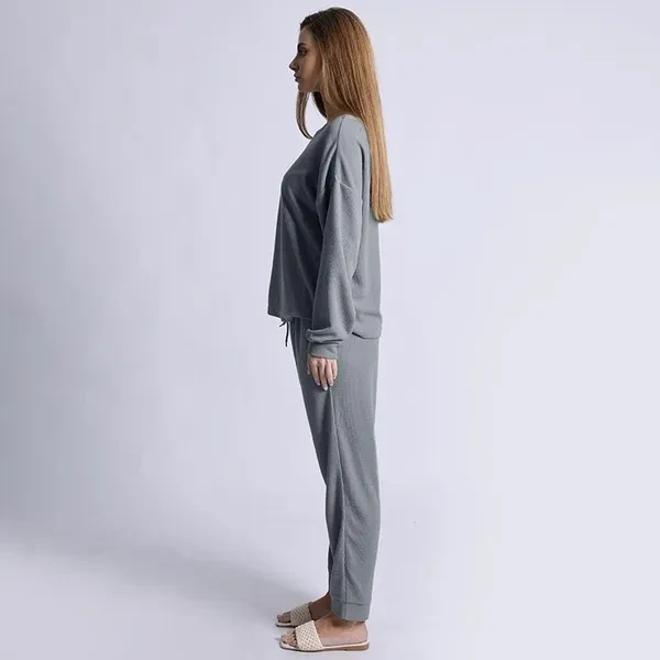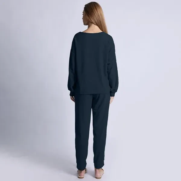 Women's 2 Piece Outfits Fashion Crew Neck Long Sleeve Pullover Top Wide Leg Pants Lounge Matching Sets Tracksuits Sweatsuit