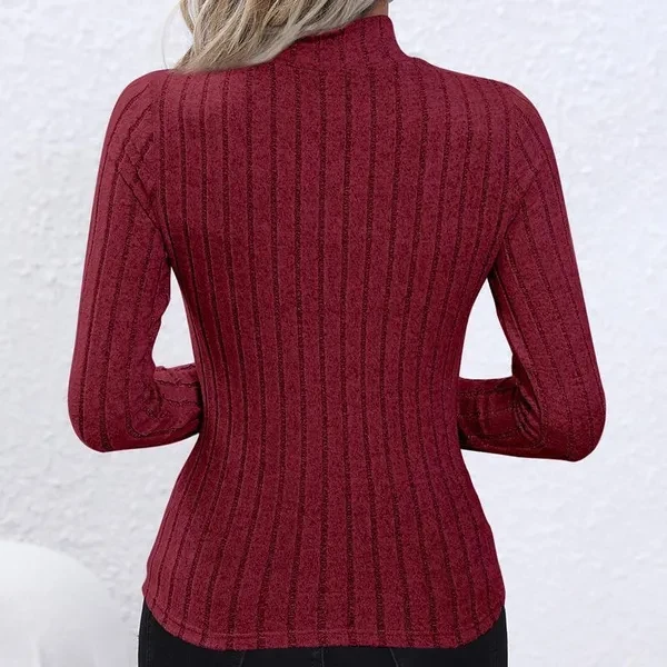 Women's Autumn Winter High Collar Long Sleeve Kniited Blouses Fashion Pit Strip Slimming Blouses Ladies Sexy Tops