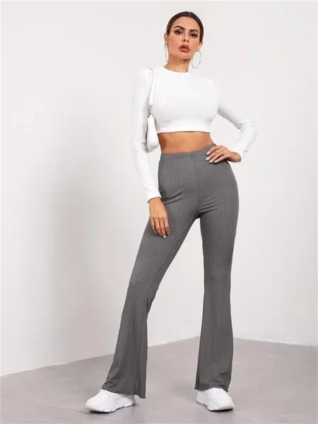Women's Fashion Casual Solid Sports Pants High Waist Yoga Pants Trumpet Pants Soft Comfy Pants