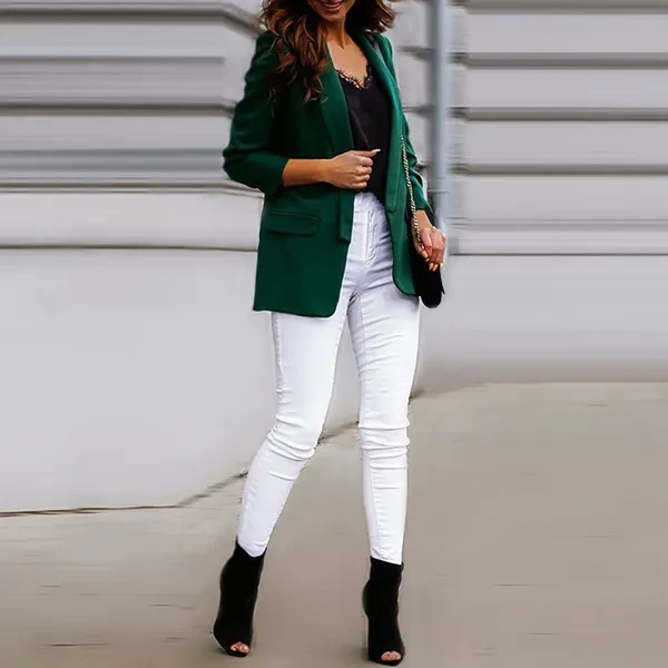 Women's Long Sleeve Solid Color Long Sleeve Small Suit Lady Blazer Women Casual Coat Ladies Office Suit Jacket S-2XL