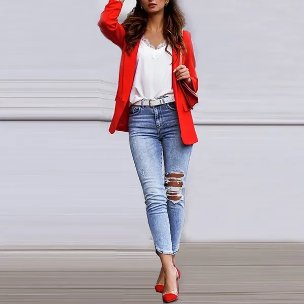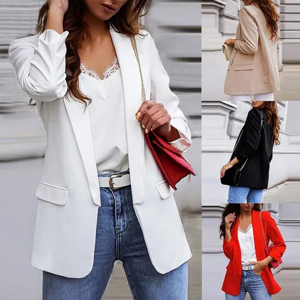 Women's Long Sleeve Solid Color Long Sleeve Small Suit Lady Blazer Women Casual Coat Ladies Office Suit Jacket S-2XL