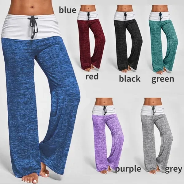 Women‘s Yoga Sports Stitching Pants Casual Wide-leg Pants