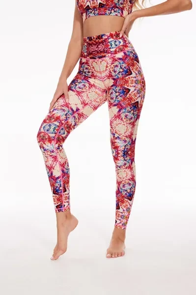 The pattern draws inspiration from Mandala paintings, which represent an exotic style, often utilized in psychological therapy. It characterized by repetitive patterns revolving around a central point. Using colors like purplish-red, yellow, blue, and green, the overall design depicts an irregular yet symmetrical look. The intricate variations in lines and rich colors form a unique totemic style, evoking a sense of ancient and mysterious feeling. The pattern encourages you to introspect into the enigmatic inner world, aiming for healing and self-relief during your exercise routine.