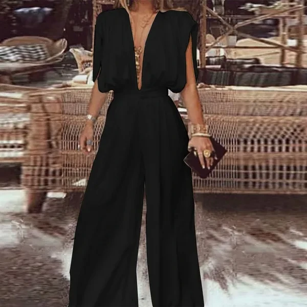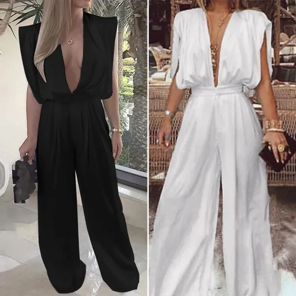 Package included:1 Jumpsuit Material:65% Polyester+35% Rayon Colors:Black,White,Army Green Size:S,M,L,XL,2XL,3XL,4XL,5XL Sleeve Length:Sleeveless Neckline:V-Neck Pattern: Solid Color Length:Ankle Length Buckle chain:With Front Zipper Thickness:Thin Decoration:Lace-Up Features:Wide-legged Style:Leisure,Bohemian,Retro,Europe,Sexy Season:Spring,Summer,Autumn,Winter Occasion:Family,Party,Beach,Wedding,Holiday Attentions: 1.The Real Object May Exist Slightly Colors Differences Compared To Images As Different Computers Display.Caution If Minding,Thanks. 2.There Might Be A Manual Measuring 1-3 cm Error.Sorry For Any Inconvenience. 3.Please Prevail On Real Item, Model Images For Reference Only. 4.Attention!!!Please check the size chart carefully before placing the order.