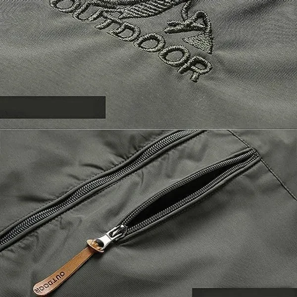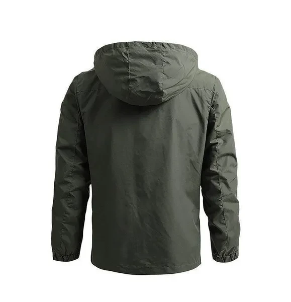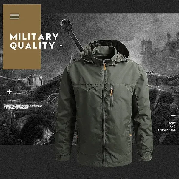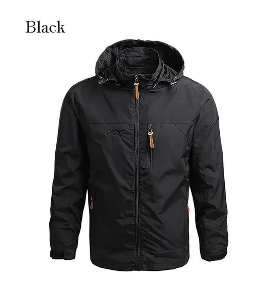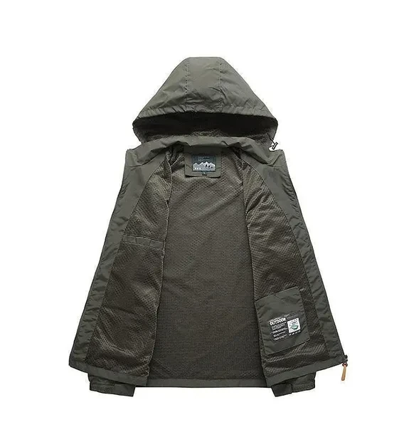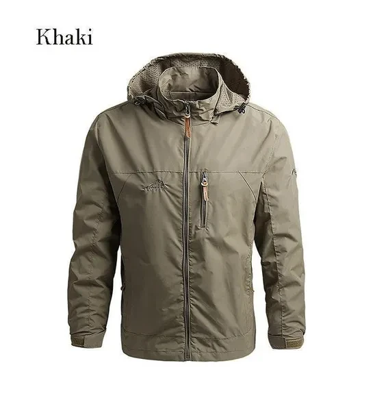 Product name: outdoor jacket Suitable gender: male Applicable season: spring, summer, autumn and winter Color: black, army green, dark blue, gray, khaki Size: S~5XL Features: windproof, waterproof, large, warm Applicable scenarios: outdoor, sports, hiking, cycling, general purpose Details and functions: Collar type: hat collar Sleeve length: long sleeve Length: Normal Style: zipper cardigan Version type: loose